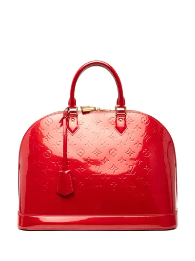 vernis leather body rolled leather handles top zip-around closure interior slip pockets red Serial Number: MI1150 Inclusions: padlock, key. Condition: GOOD. This previously owned and used item is in good condition with minimal signs of use. This may include fading of material or plating and scratches. Please refer to the photos on this product page for a detailed view of the item, including any damages declared.