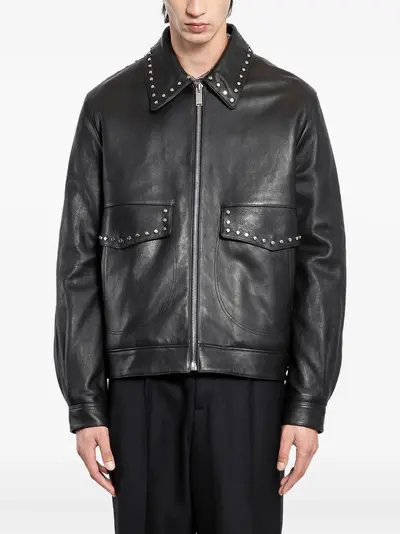 black studded detailing point collar front zip fastening two front flap pockets long sleeves