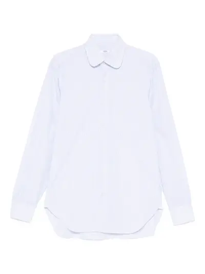 blue striped pattern round collar front button fastening long sleeves buttoned cuffs