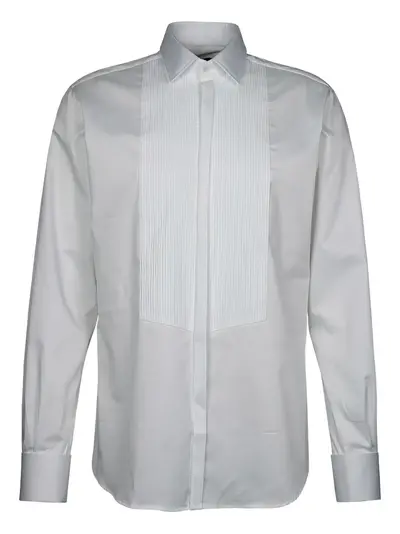white pleated detail button fastening long sleeves buttoned cuffs classic collar