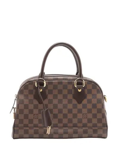 damier canvas body clochette rolled leather top handles top zip closure interior slip pockets brown Serial Number: CA1025 Inclusions: charm, padlock, key. Condition: EXCELLENT. This previously owned item is in near-perfect condition with no signs of damage or use. Due to the exclusivity of this item and its limited availability, processing and delivery might take longer than usual. Please refer to the photos on this product page for a detailed view of the item, including any damages declared.