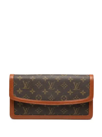 monogram canvas body with a leather trim front flap with magnetic snap closure interior zip and slip pockets brown Serial Number: 884 TH This item has no inclusions. Condition: GOOD. This previously owned and used item is in good condition with minimal signs of use. This may include fading of material or plating and scratches. Declared Damages: Exterior Side Feature(s) Moderate Cracks. Please refer to the photos on this product page for a detailed view of the item, including any damages declared.
