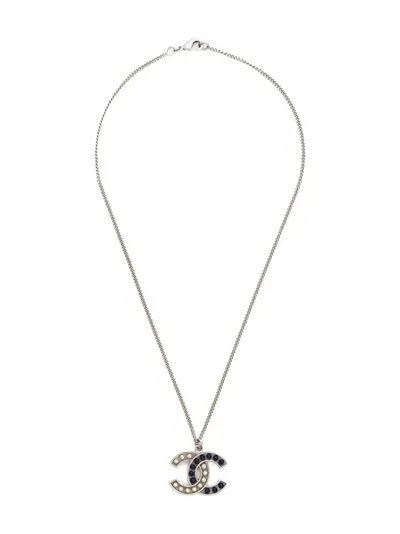 silver-tone CC mark pendant pearl embellishment lobster clasp fastening chain link