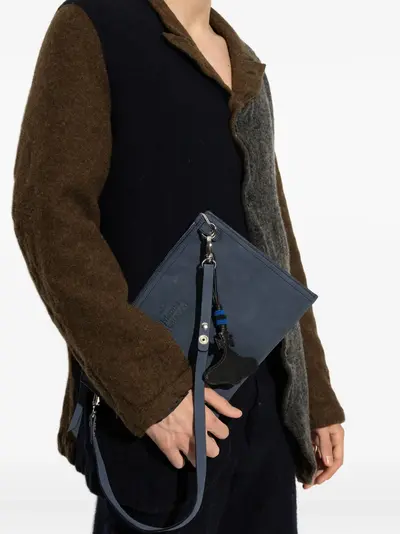 dark blue adjustable shoulder strap top zip fastening silver-tone hardware embossed logo