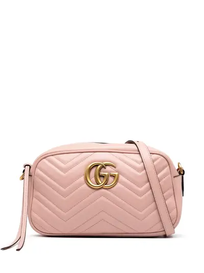 quilted leather body curb chain strap top zip closure interior slip pocket pink Serial Number: 447632 001998 Inclusions: dust bag. Condition: GOOD. This previously owned and used item is in good condition with minimal signs of use. This may include fading of material or plating and scratches. Please refer to the photos on this product page for a detailed view of the item, including any damages declared.