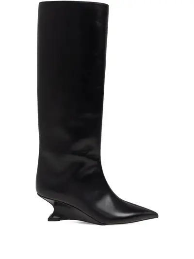 black pointed-toe sculpted-heel knee-high pull-on style leather