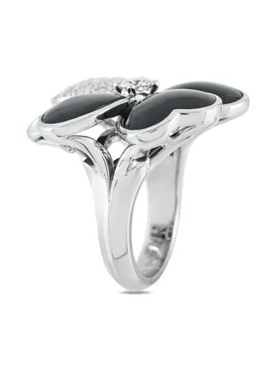silver-tone 18K white gold floral motif heart motif onyx gemstone embellishments pavé-set round-cut diamonds Normal everyday use and external agents may reduce the lustre of gemstones and gold surfaces. To maintain, use specific, non-abrasive products specially meant for cleaning jewellery.