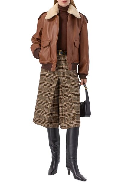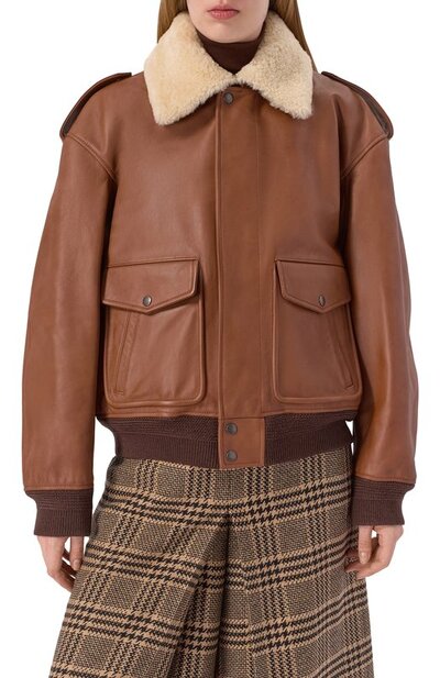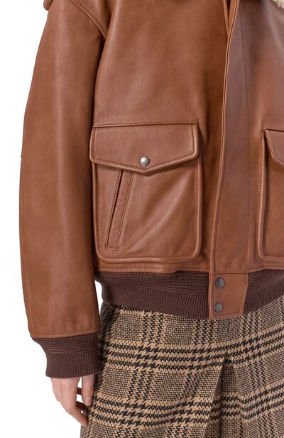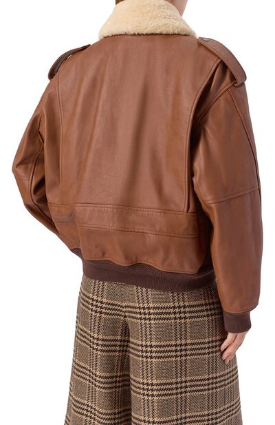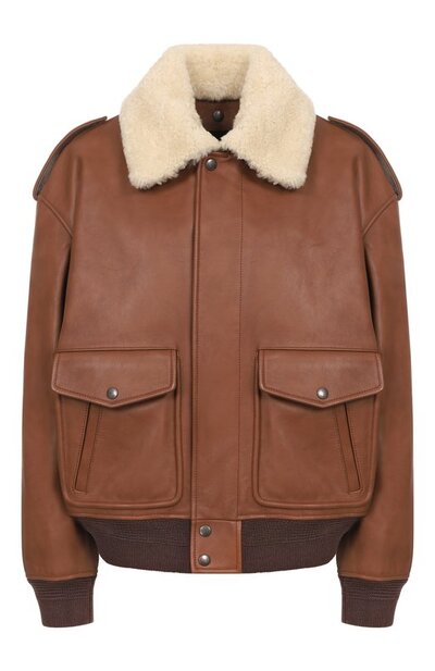 Кожаный бомбер Saint Laurent 843525/ycte2 (коричневый, lpn31082669)