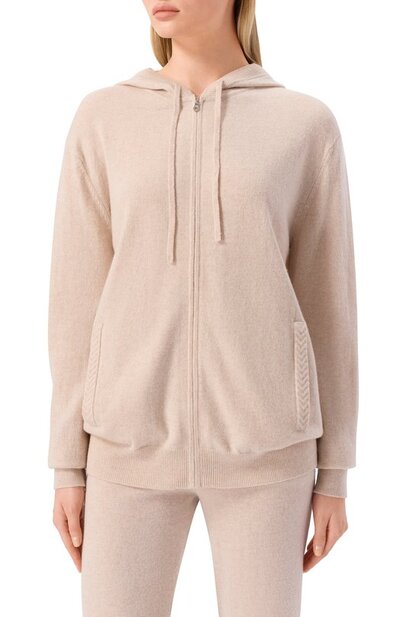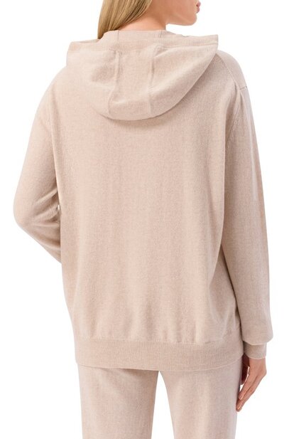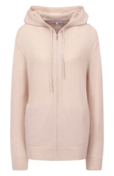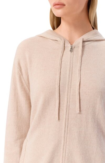 Кардиган с манжетами и поясом в рубчик и регулируемым капюшоном связали из чистого кашемира. Модель на потайной молнии дополнили боковыми карманами с шевронной отделкой.