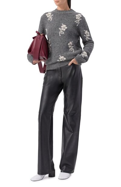 Ботильоны с анатомически правильным мысом выполнили из мелкозернистой наппы. Модель без застежки поставили на цилиндрический выступающий каблук средней высоты.