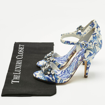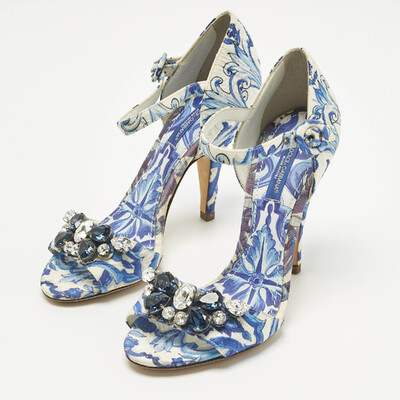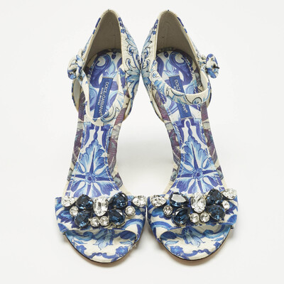 Blue brocade meets crystal sparkle in sandals that feel like a holiday evening on the Amalfi coast. Rich textures, a bit of shimmer — joyful, vibrant, and made to be noticed.