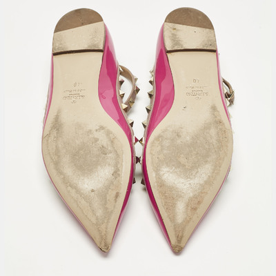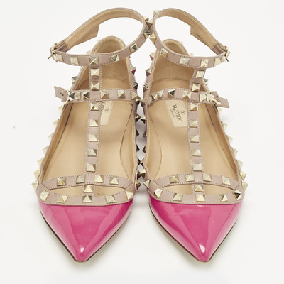 Valentino’s Rockstud ballet flats in pink patent leather deliver wearability and luxe style. The pointed toe and gold studs make them the kind of pair that works as easily for travel as for long workdays.