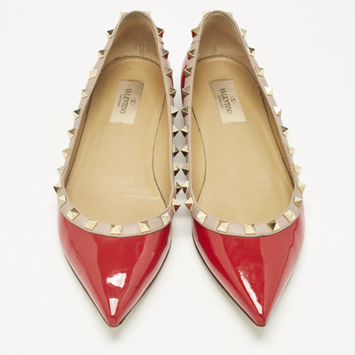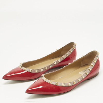 In high shine red patent, Valentino’s Rockstud flats make an unapologetic statement. Their pointed toes and pyramid studs lend a striking contrast to the classic ballet shape.