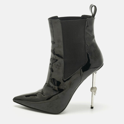 Philipp Plein Black Patent Leather Skull Ankle Length Boots Size 39 1234435 (чёрный, lpn31083648)