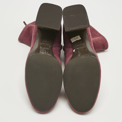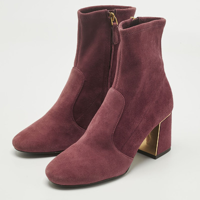 Burgundy suede gives these Tory Burch womens boots high appeal. The ankle length cut and block heel keep the look wearable, while the soft texture adds a touch of depth. They’re the kind of boots that slip easily into your day.