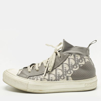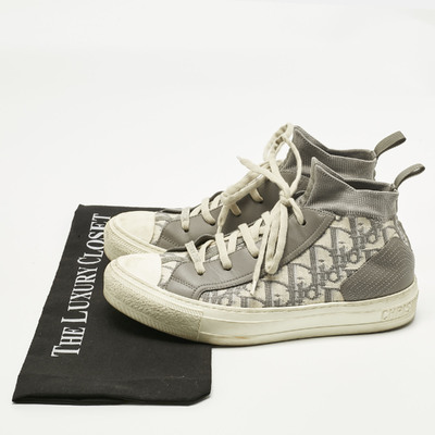 Dior Grey Knit Fabric and Leather Walk'n'Dior High Top Sneakers Size 39.5 1234278 (lpn31083652)