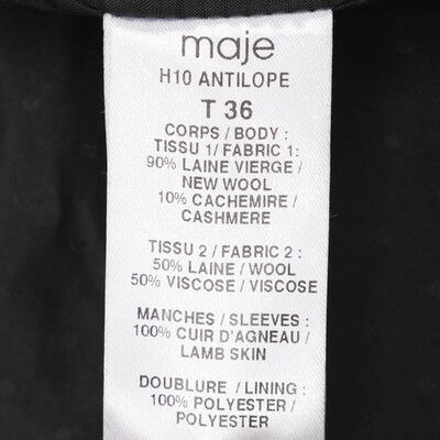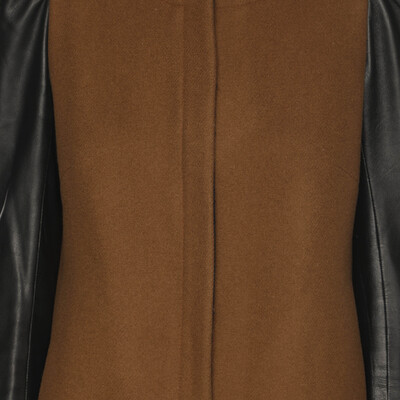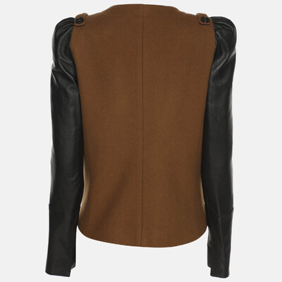 Maje Khaki/Black Wool Blend and Leather Zip Jacket S 1234092 (коричневый, lpn31083659)