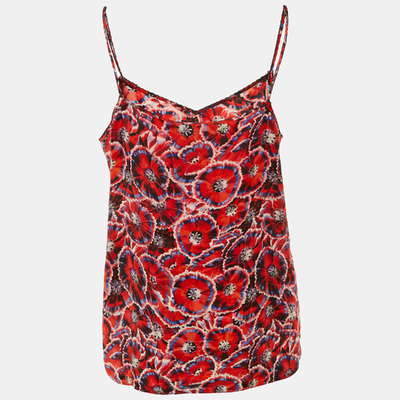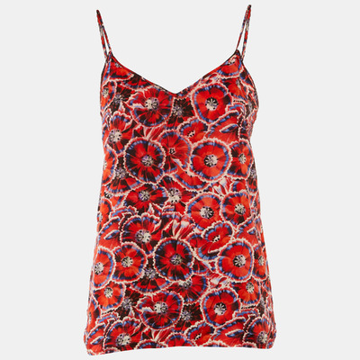 This Gucci silk camisole blooms with a red poppy print that feels vibrant yet soft. The fluid silk drapes lightly over the skin, making it an easy choice for warm days or layered evenings. Style with skirts, denim, or tucked into tailored trousers.