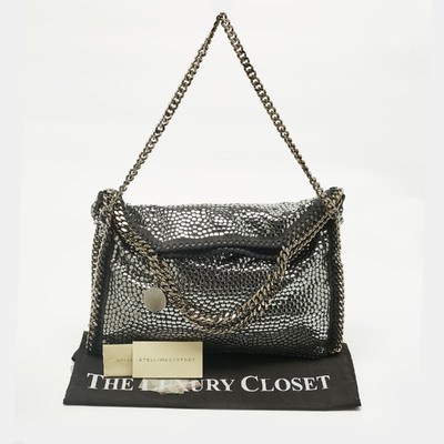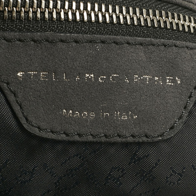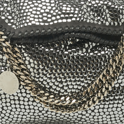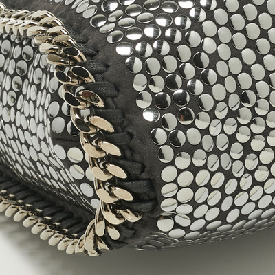 This Stella McCartney small Falabella tote in black faux suede is edged with signature chains and covered in studs for a bold, modern twist. Its compact shape keeps it versatile, while the metal details give it shine.
