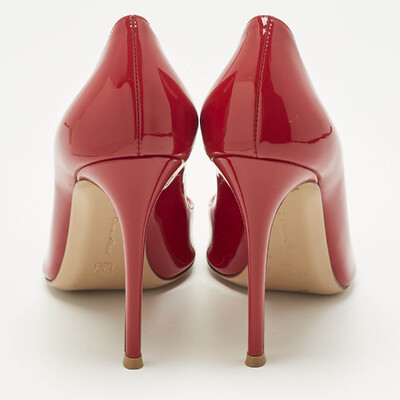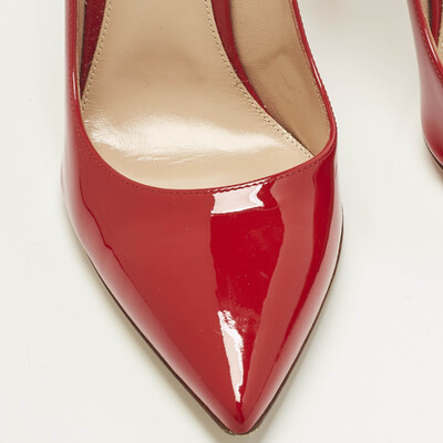 A beautiful pair by Gianvito Rossi, these pumps are crafted in glossy red patent leather with a pointed toe and 10 cm heel. The smooth finish and red color of the patent leather amplify the pairs appeal.
