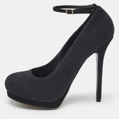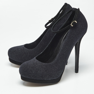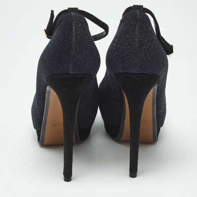 Nightfall captured in a shoe. Black glittered suede sparkles with every step, while the ankle strap and platform add lift without losing ease. Perfect for rooftop cocktails, late dinners, or any evening that calls for a little extra shine.