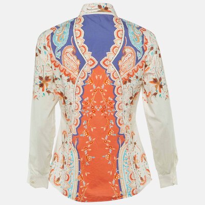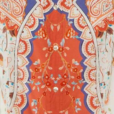 This Etro button front shirt for women in cotton captures the brand’s love for intricate patterns and easy sophistication. The collared design and crisp cotton base make it a versatile piece—style it over jeans for a casual weekend look, or tucked into tailored trousers for a sharper mood.