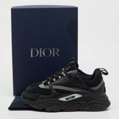Dior Black Mesh and Leather B22 Low Top Sneakers Size 42 1233987 (чёрный, lpn31083774)