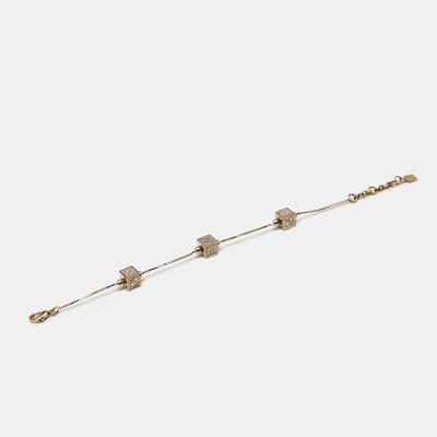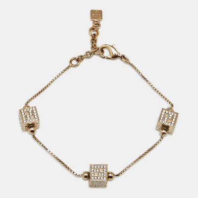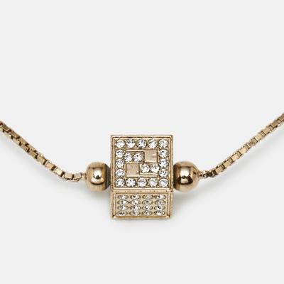 The Fendi FF Crystal Cube bracelet in gold tone drapes across the wrist like liquid geometry. Tiny crystal cubes catch the eye, punctuating the links with unexpected sparkle.
