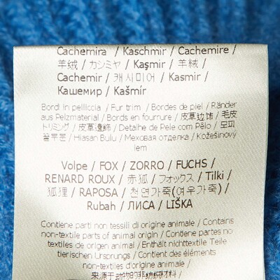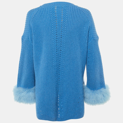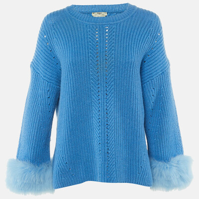 Luxurious and tactile, this Fendi pullover is crafted in blue cashmere and accented with plush fox fur at the neckline. The minimal silhouette highlights the brand’s mastery of combining comfort with opulence, perfect for cool weather layering.