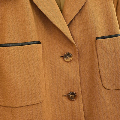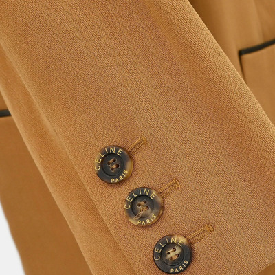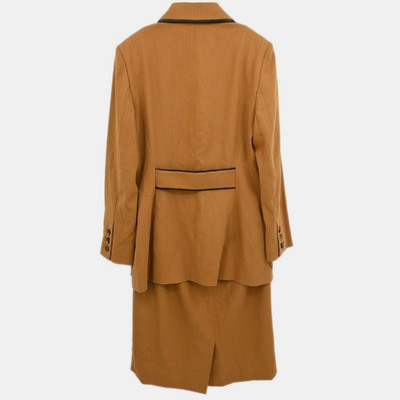 This Celine brown setup suit includes a tailored jacket and matching skirt in size 42. The clean lines and balanced proportions make it versatile for work or special occasions. Crafted from quality materials, this set shows Celine’s refined approach to modern tailoring.