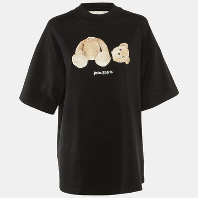 Palm Angels Black Bear Print Cotton Oversized T-Shirt M 1233690 (чёрный, lpn31083828)