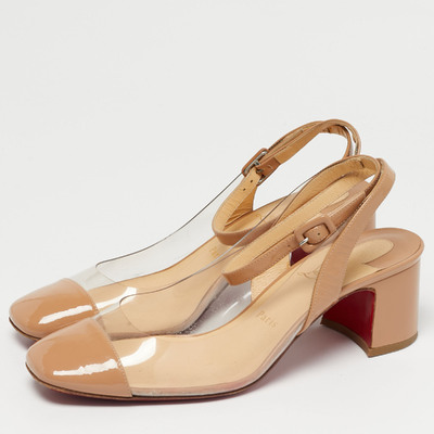 Christian Louboutin Beige Patent Leather and PVC Asticocotte Block Heel Pumps Size 40 1233877 (бежевый, lpn31083850)