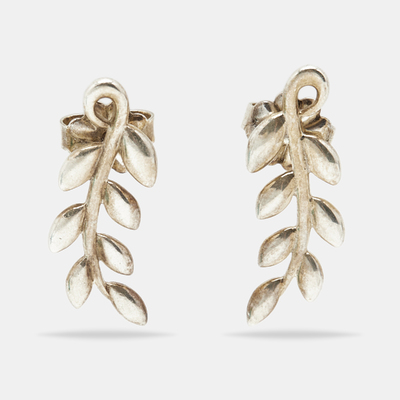 Inspired by nature’s poetry, Tiffany and Co.’s Olive Leaf climber earrings are crafted in polished sterling silver. The organic silhouette gracefully follows the curve of the ear, symbolizing peace and harmony — an artful balance of sculptural design and timeless sentiment.