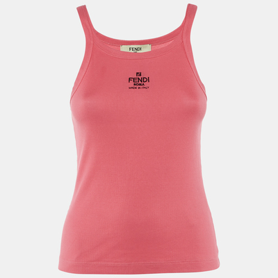 Fendi Coral Pink Logo Embroidered Rib Knit Tank Top S 1233704 (розовый, lpn31083855)