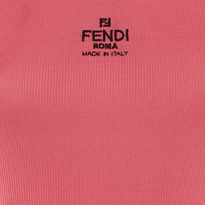 This Fendi rib knit tank top in coral pink showcases refined craftsmanship in a casual form. The tonal embroidered logo adds subtle branding, while the stretch texture ensures a flattering fit and ease of movement.