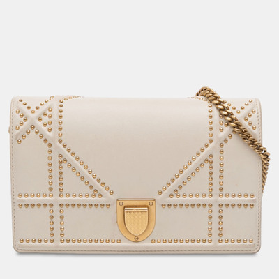 Dior White Studded Lambskin Diorama Wallet on Chain 1233428 (белый, lpn31083940)