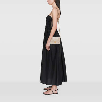 The Dior Diorama wallet on chain comes in soft lambskin with delicate stud details. Compact and stylish, it serves as both a clutch and a mini crossbody for evening outings.