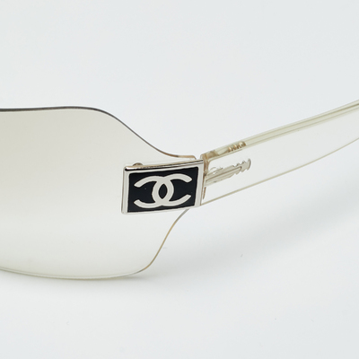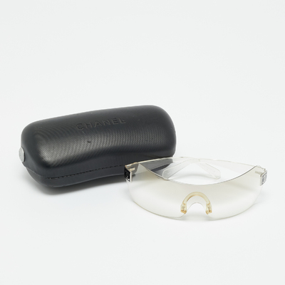 Slide on the Chanel 4109 shield sunglasses, and the world softens around you. The transparent gradient lenses filter light gently, while the CC logo at the temples adds a signature. Oversized yet luxurious, they offer full coverage and style for sunny days.