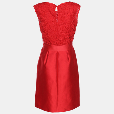 Ch Carolina Herrera Red Floral Lace & Crepe Sleeveless Short Dress S 1233373 (красный, lpn31083951)