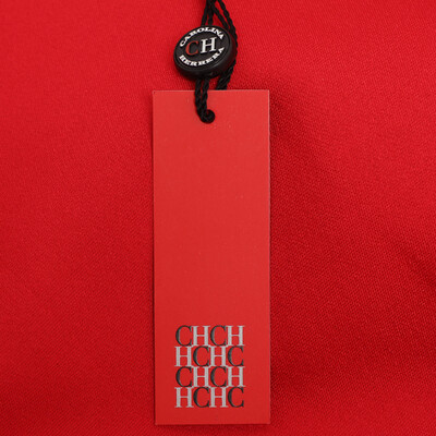Carolina Herrera’s short dress pairs red floral lace with crepe panels to create dimension and charm. The sleeveless cut and tailored fit highlight the waist, while the vivid hue captures the brand’s spirited femininity and modern sophistication.