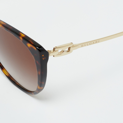 Bvlgari’s BV8251 cat eye sunglasses capture timeless glamour through sculpted acetate frames in a tortoiseshell finish. The gradient lenses offer subtle tonal depth, while signature temple detailing reflects the house’s jewelry inspired craftsmanship. Lightweight and elegant, they bring definition to any ensemble.
