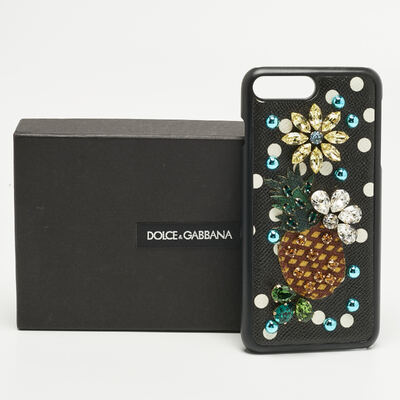 Dolce and Gabbana transforms a simple phone case into a miniature work of art. Multicolour fruit print leather is set with sparkling crystals for a baroque flourish. A practical way to protect your device while carrying a touch of the runway.