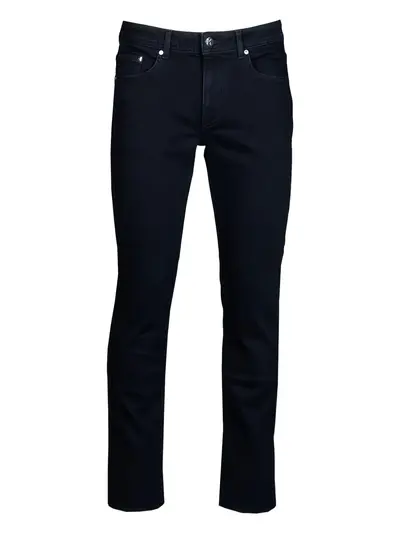 blue classic five pockets logo patch tonal topstitching belt loops button fastening