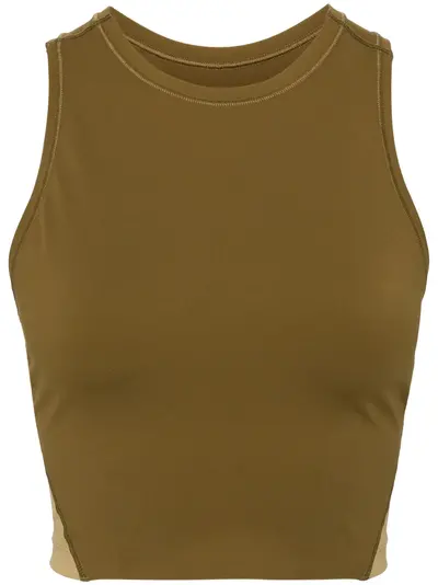 Hunter beige recycled polyester blend stretch-design panelled design logo print to the side round neck sleeveless straight hem cropped