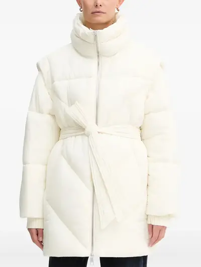 off-white quilted design high neck zip fastening self-tie belt long sleeves
