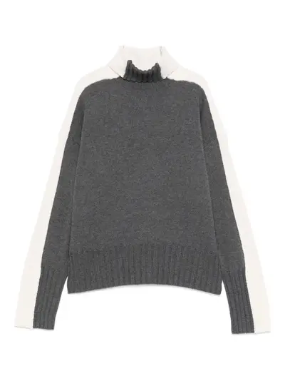 grey roll neck panelled design long sleeves ribbed hem ribbed cuffs