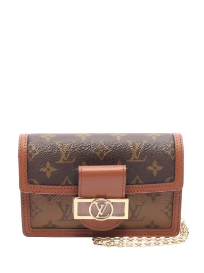 monogram reverse canvas body flat leather strap front flap with magnetic closure interior zip and slip pockets brown This item has no inclusions. Condition: EXCELLENT. This previously owned item is in near-perfect condition with no signs of damage or use. Due to the exclusivity of this item and its limited availability, processing and delivery might take longer than usual. Please refer to the photos on this product page for a detailed view of the item, including any damages declared.