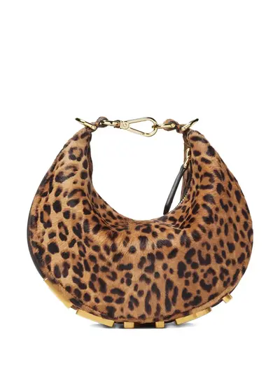 brown leopard print gold-tone hardware top zip fastening top handle detachable shoulder strap