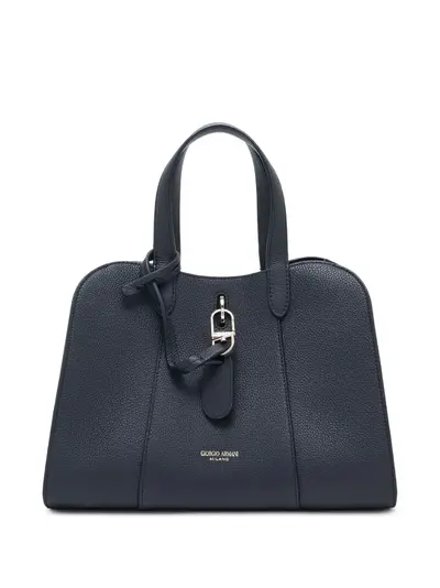 black leather two top handles gold-tone hardware internal zip pocket lobster-clasp fastening logo stamp