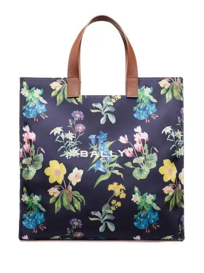 blue/multicolour recycled polyester all-over floral print two top handles main compartment embroidered logo to the front open top